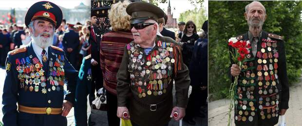 Ежегодно в День Победы люди замечают среди празднующих своеобразных «коллекционеров». Некоторые из них надевают на себя огромное количество медалей, по принципу – чем больше, тем лучше. Чужие боевые награды соседствуют с юбилейными значками, все они размещены вне какого-либо порядка и логики. Встречаются члены общественных организаций, собирающие у себя на груди ворох общественных знаков отличия, очень похожих на государственные награды. Есть аферисты, выдающие себя за ветеранов боевых действий, да и просто больные люди.