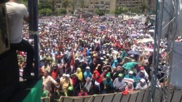 Сообщается, что сторонники смещенного президента Египта Мохаммеда Мурси собираются у мечети Рабия аль-Адавия в Каире. Счет демонстрантов идет на тысячи и продолжает увеличиваться.и