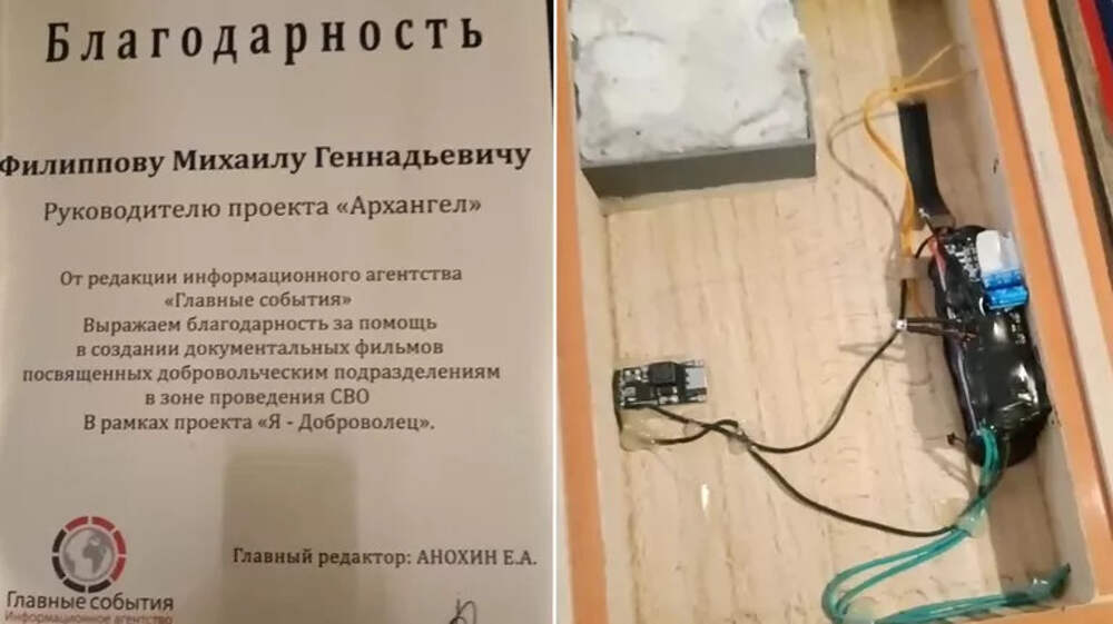Заминированную грамоту в рамке с подсветкой пытались вручить главе добровольческого проекта «Архангел» Михаилу Филиппову, теракт предотвращен, исполнитель задержан, сообщил ТАСС куратор проекта Виталий Романов. Всероссийский проект «Архангел» образован группой энтузиастов в 2022 году вскоре после